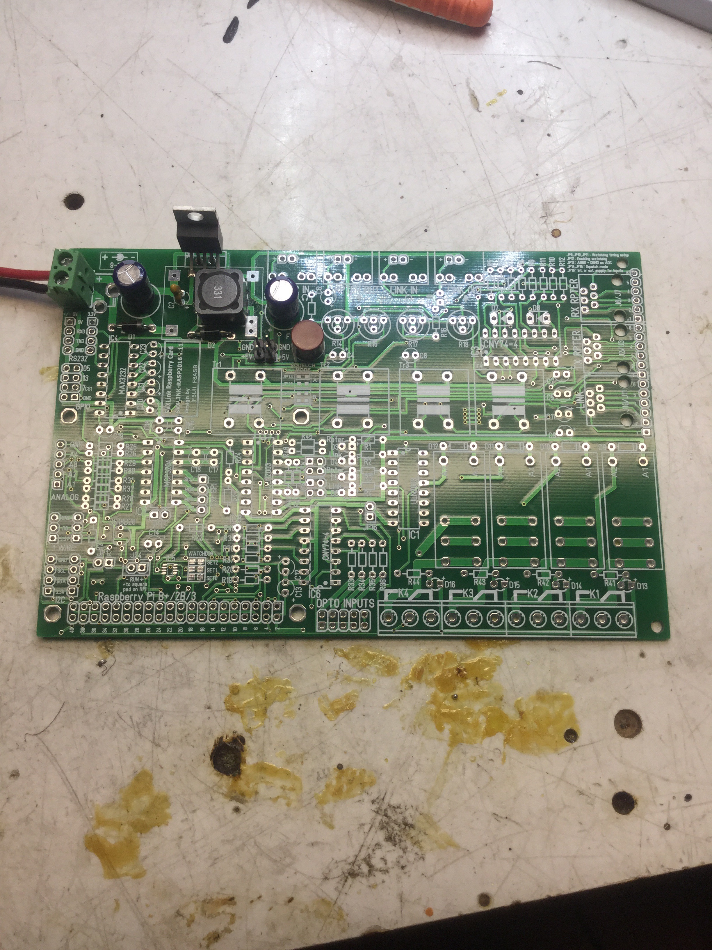 I assembled the power supply section using an lm5025 power supply. It has a current supply of 1.5 amps, plenty enough for the Pi.