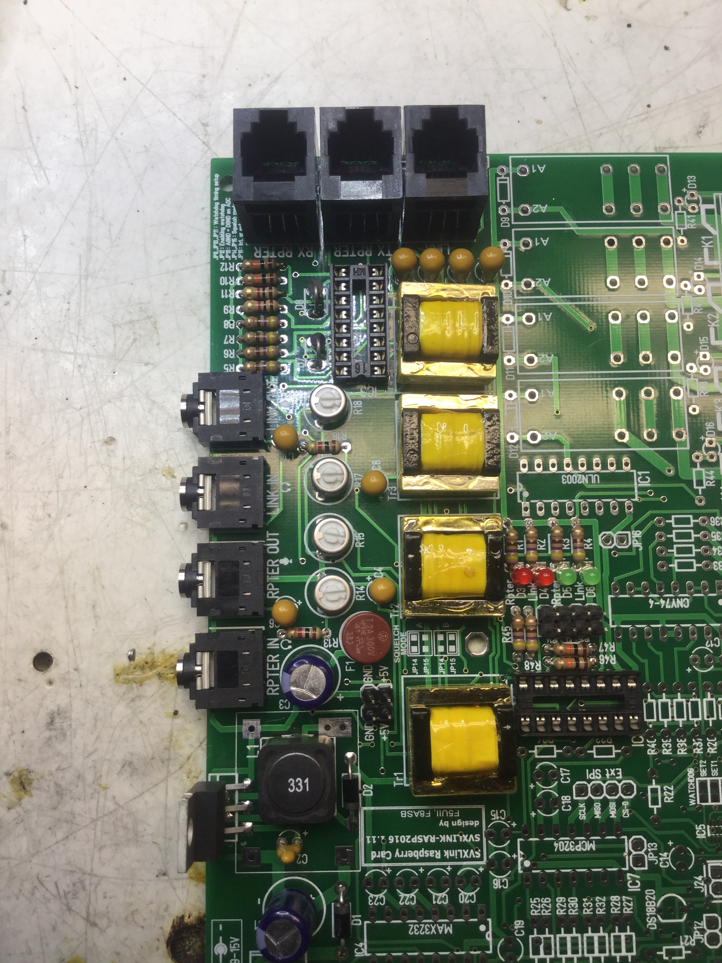 Next step was the audio in and out jacks, level potentiometers, isolation transformers and radio interface jacks.